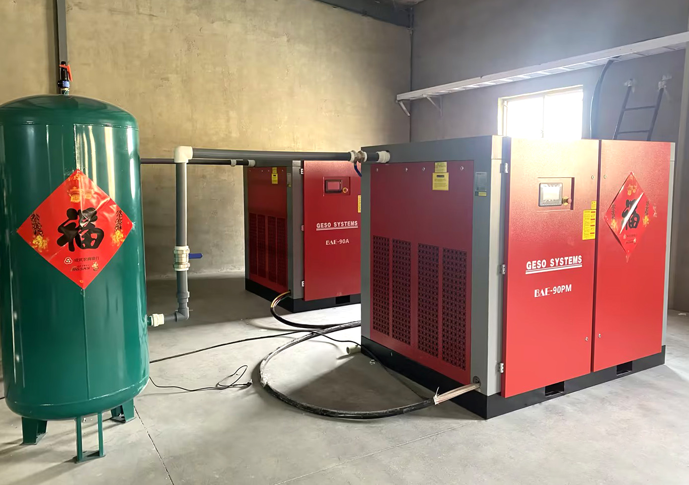 Tá an chuideachta suite i Heze, Cúige Shandong. Le leathnú leanúnach a ghnó, tá riachtanais níos airde curtha ar aghaidh aige maidir le feidhmíocht agus cobhsaíocht an trealaimh táirgthe. Tar éis cigireachtaí fairsinge agus scagthástálacha dochta, roghnaigh sé ceann amháin ar deireadh le gach ceann dár gcomhbhrúiteoir aeir minicíochta athróg dúbailte (BAE-90pm) agus comhbhrúiteoir aeir mhinicíochta scriú dúbailte (BAE-90A), le cumhacht 90kW, agus ag an am céanna feistithe le trealamh iarchláraithe na seirbheála céanna.
